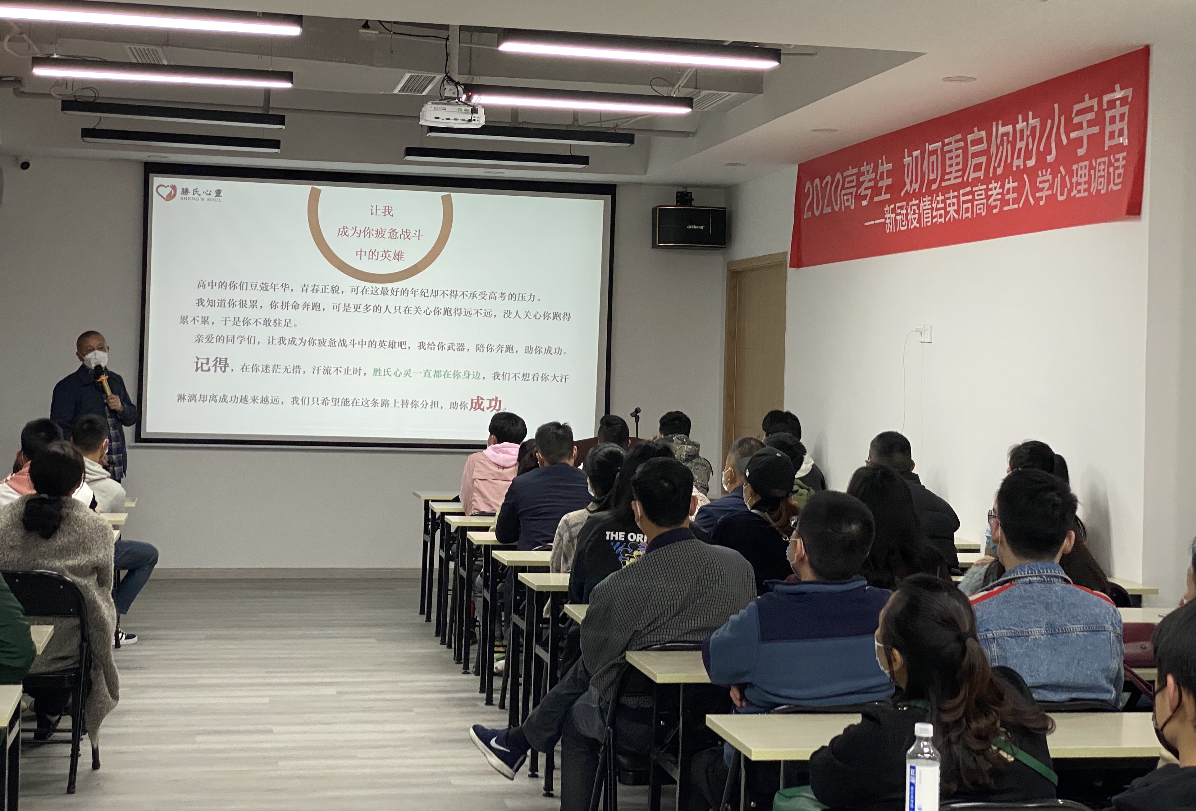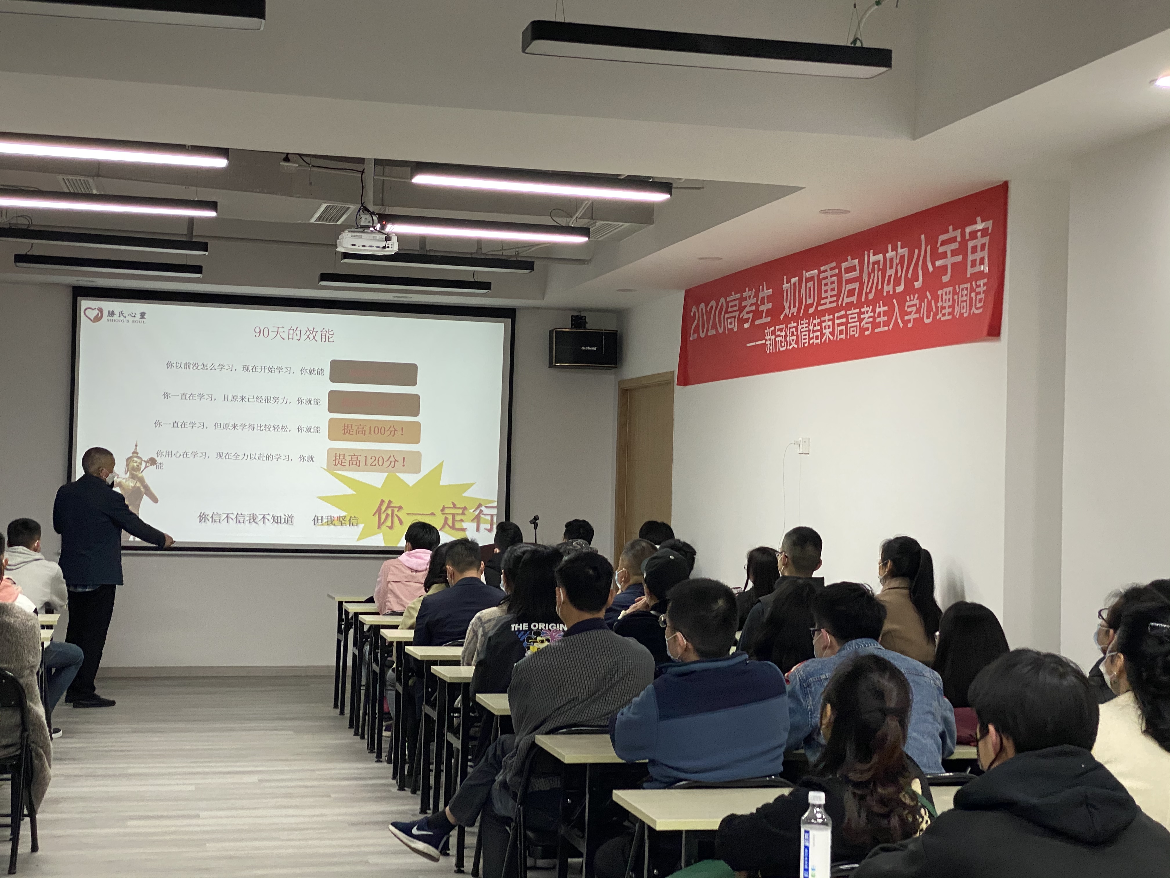 距离2020年高考还有90天,今年注定是一个不平凡的年度,不管是面对突如其来的疫情,还是面对延期一个月的高考,对于高三学生和家长无疑都是一次巨大的考验……为帮助高三学生调整节奏,找到方法,明确方向,找回动力和自信,以最佳状态迎战高考,在成都高三学生刚刚复课的关键时刻,胜氏心灵于2020年4月7日举办了一场别开生面的大型公益讲座——《2020高考生 如何重启你的小宇宙》。